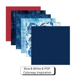 A variety of blues on a white solid background AND a pop of color.